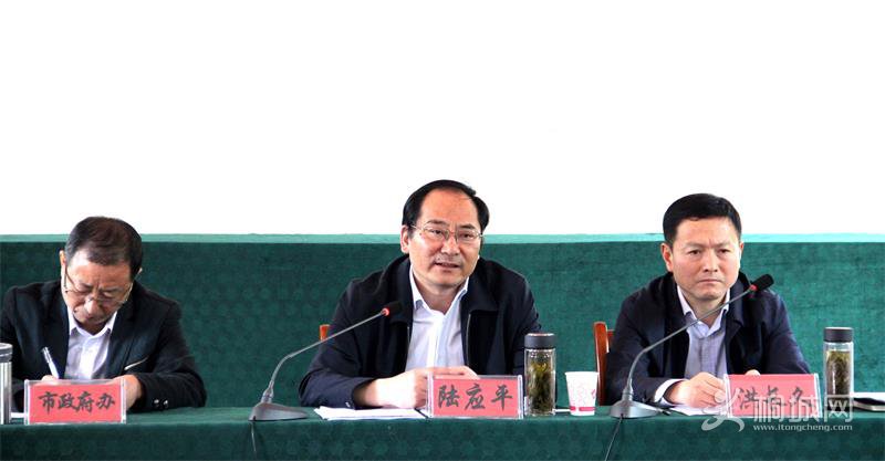 4月27日,唐湾片脱贫攻坚工作推进会在唐湾镇政府会议室召开。桐城市长陆应平出席会议并讲话。副市长洪长久主持会议。