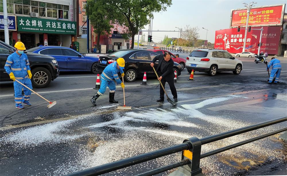 桐城市应急管理局接报后,立即启动响应机制,值班值守人员第一时间赶到现场,会同消防、交警、环保、城管等部门进行现场处置。公安交警及时实行交通管制,确保现场道路交通安全。