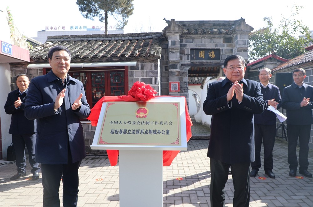 2月12日上午,全国人大常委会法制工作委员会宿松基层立法联系点桐城办公室揭牌仪式在桐城六尺巷让园举行。安徽省人大常委会党组副书记、副主任张韵声,安庆市人大常委会主任周东明,安庆市人大常委会副主任江春生,我市领导洪长久、汪名东出席揭牌仪式。