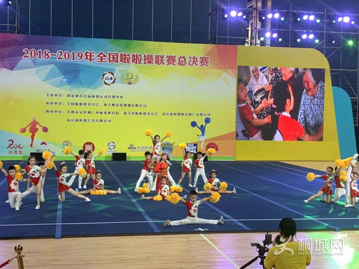 7月16日至19日,由国家体育总局体操运动管理中心主办,全国啦啦操委员会、浙江横店影视城有限公司承办的2018—2019年全国啦啦操联赛总决赛在浙江省东阳市体育馆举行。来自全国各地共几百支代表队参加比赛。桐城市文昌幼儿园阳光宝贝啦啦队参加此次比赛,喜获公开幼儿乙组集体花球自选动作第二名的好成绩,并收到国际比赛邀请函。