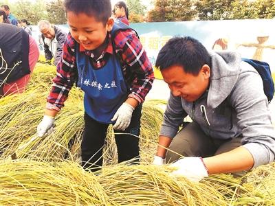 昨天是国庆假期最后一天, 20组亲子家庭来到中国园林博物馆,在京西御稻田生态种植体验区挥舞起手中的镰刀,体验了一把“秋收乐趣”。北京青年报记者了解到,中国园博馆内种植的是北京鼎鼎大名的“皇家”稻米——京西御稻,自清代时就被用作“皇家贡米”。由于今年长势很好,园博馆成为全市较早收获稻米的区域之一。
